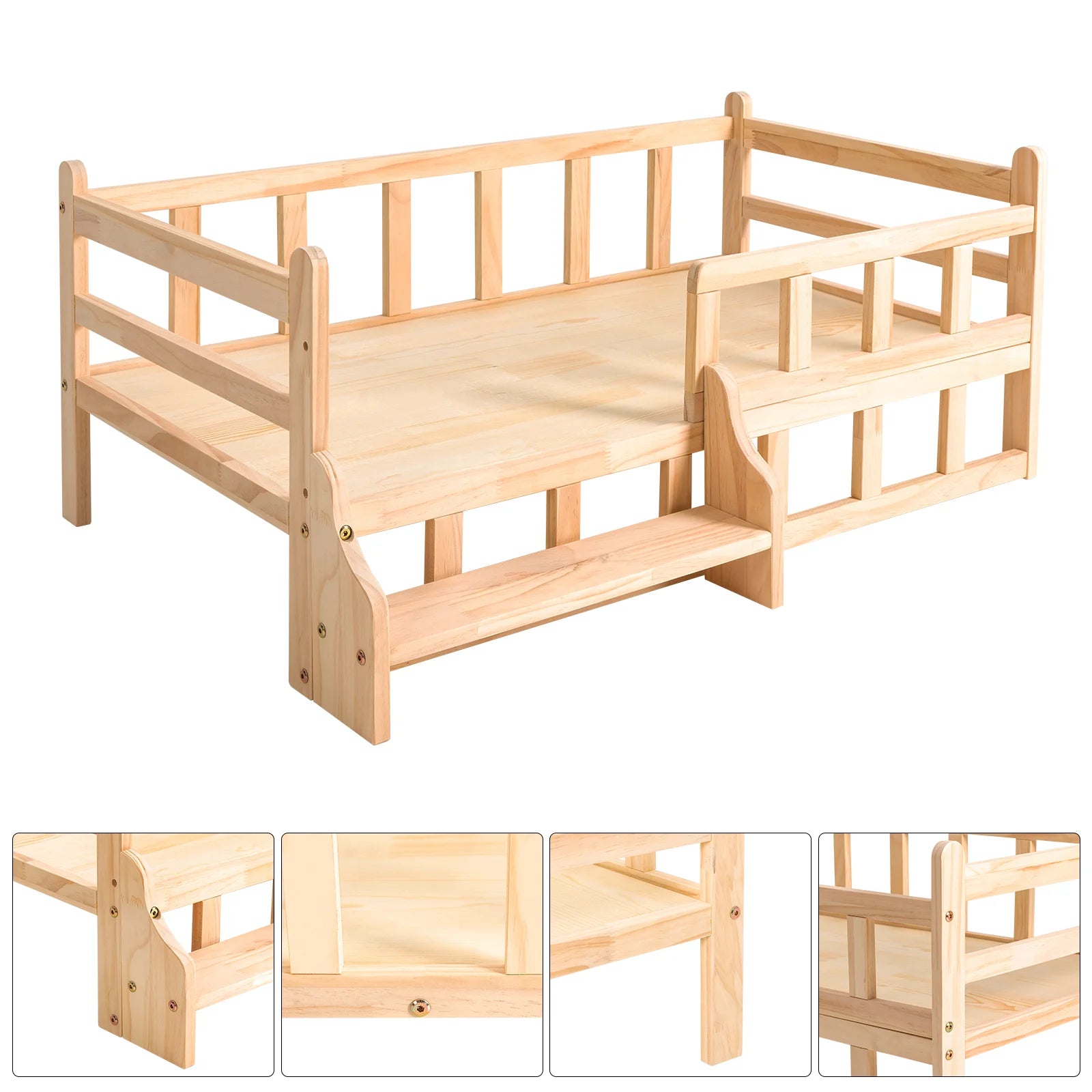 Solid Wood Pet Bed, Wooden Dog Bed Frame,